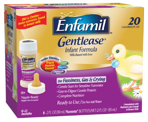 Enfamil Gentlease Gentle Infant Formula, Ready to Use, 2 Fluid Ounce Nursette Bottle, Pack of 6