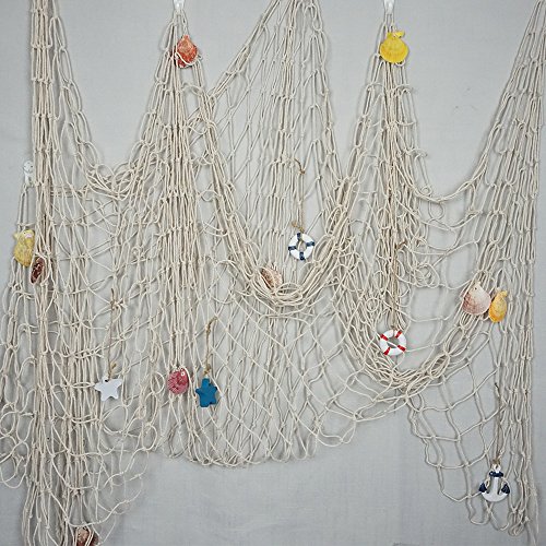 - ❉PACKAGE INCLUDES -The fishing net is about 1.5x2 meters after the net spreads .The fishing net is decorated with some natural color shells and it is great decoration for home, bar, coffee shop, beach restaurant or parties, etc.