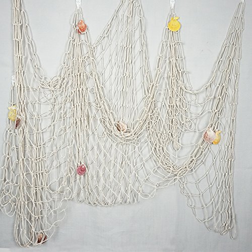 Decorative Fishing Net with Seashells, Fishing Net Decor,Nautical Style Wall Party Decorations, Creamy White by Shxstore