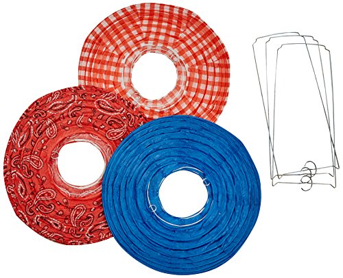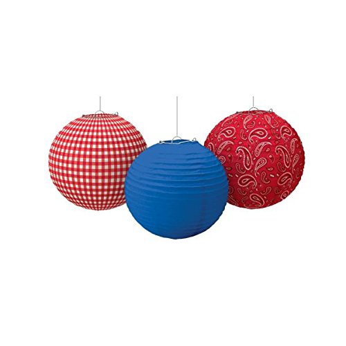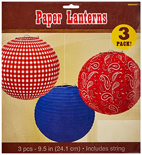 Amscan High Riding Western Party Printed Round Lanterns (3 Piece), Multicolor, 9 1/2"