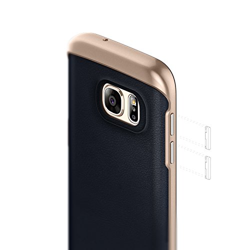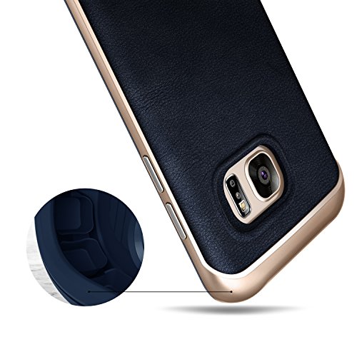 The Caseology Envoy Galaxy S7 Case Leather Navy Blue is a slim fit luxury case with dual layer protection, durable leather cover, and protective shock absorbing frame