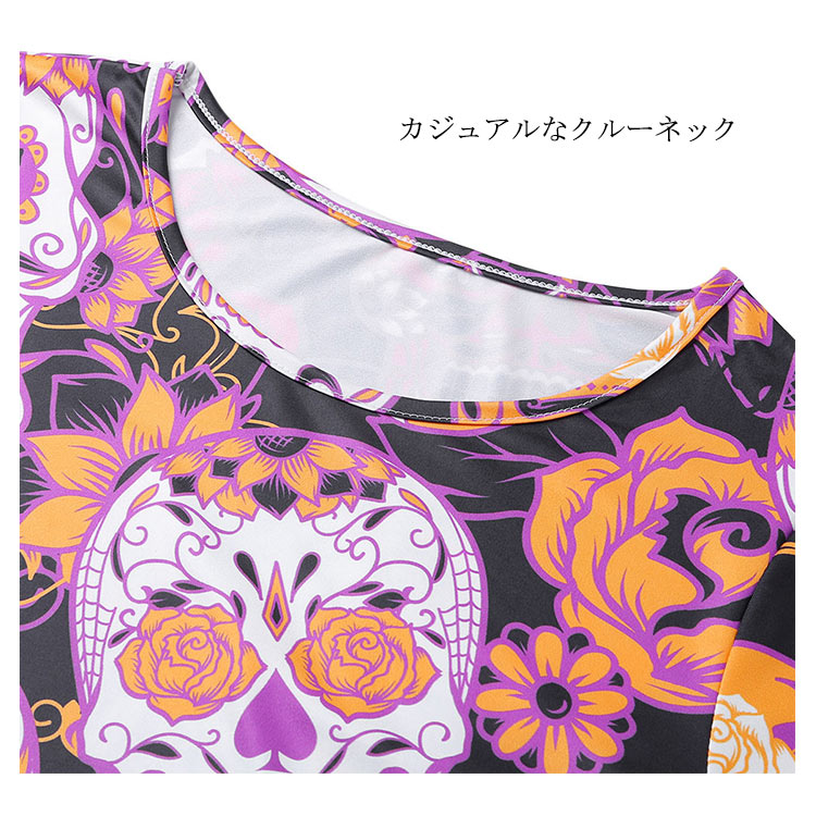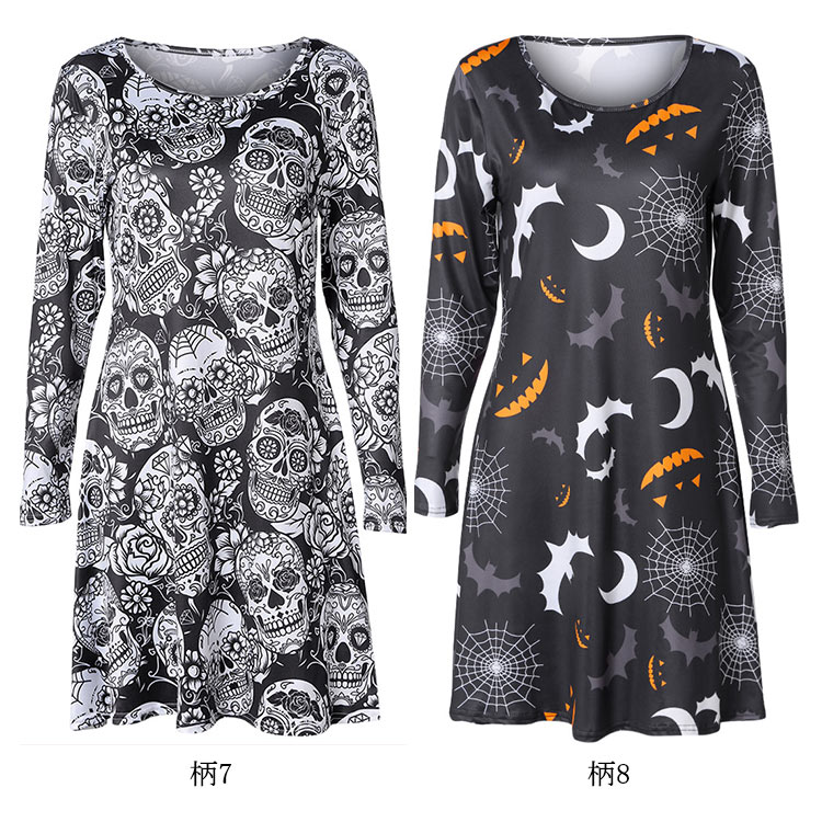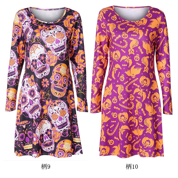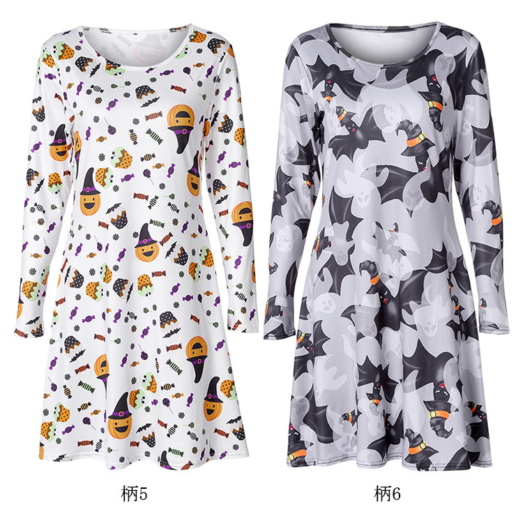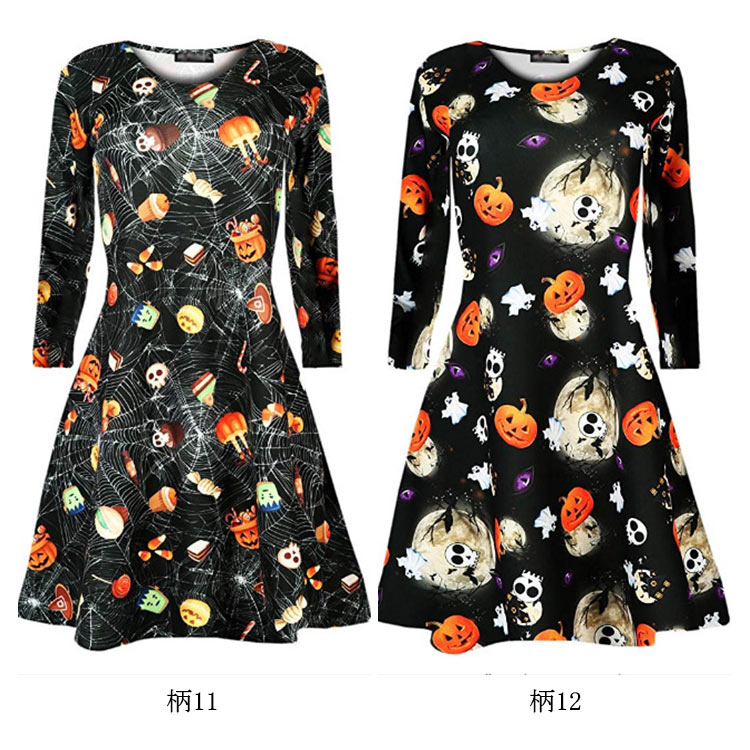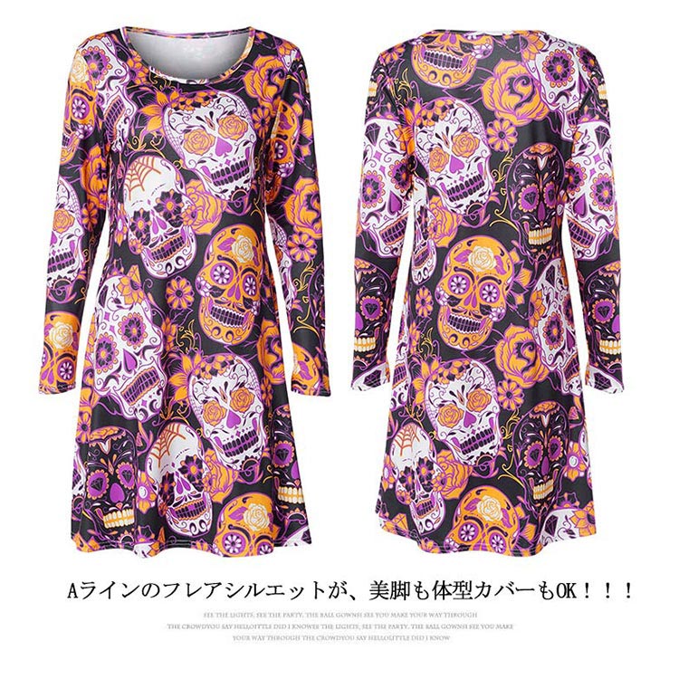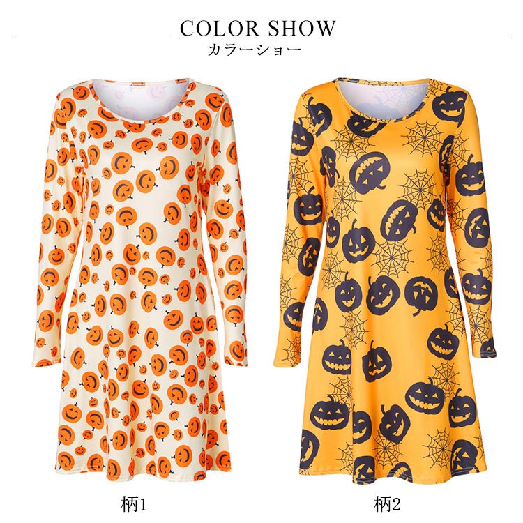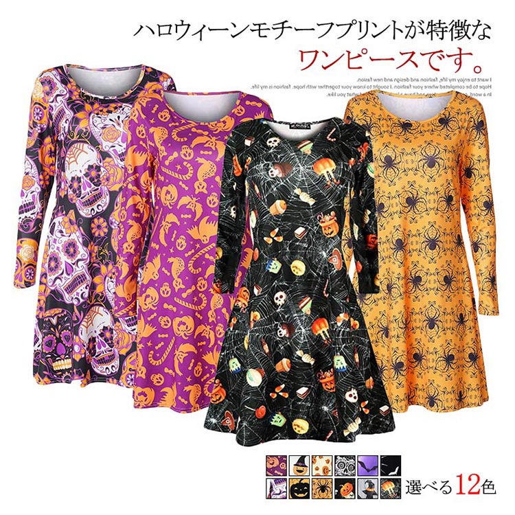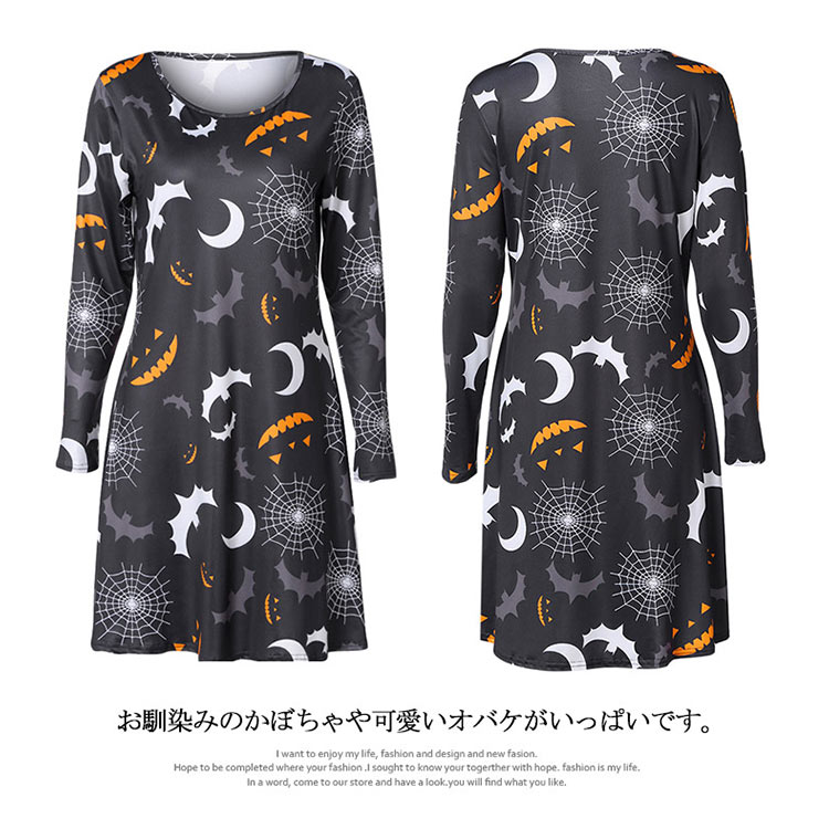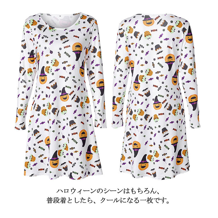 | ハロウィーンモチーフプリントが特徴なワンピースです。お馴染みのかぼちゃや可愛いオバケがいっぱいです。Aラインのフレアシルエットが、美脚も体型カバーもOK!!!ハロウィーンのシーンはもちろん、普段着としたら、クールになる一枚です。 | |