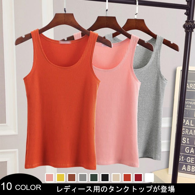 タンクトップ レディース リブ仕様 薄手 ニットタンクトップ 夏物 女性用 トップス ノースリーブ ラウンドネック 着まわし インナー 肌着