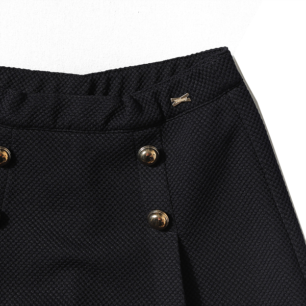 소재-겉감 : 폴리에스터 75 레이온 18 폴리우레탄 7 안감 : 폴리에스터 100 색상-네이비 사이즈-110,120,130,145,155상세설명-금색의 단추가 멋스럽게 장식 된 치마반바지입니다.