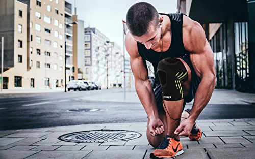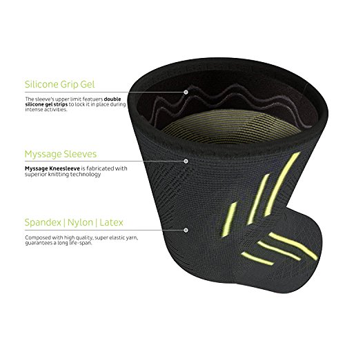 Performance Compression Recovery Knee Sleeve | Non-Slip Double Silicone Gel Strips Best Grip & Stability | Pain Relief Quick Recovery | Gym Squats Weight Training Running Cycling | 1 Pack