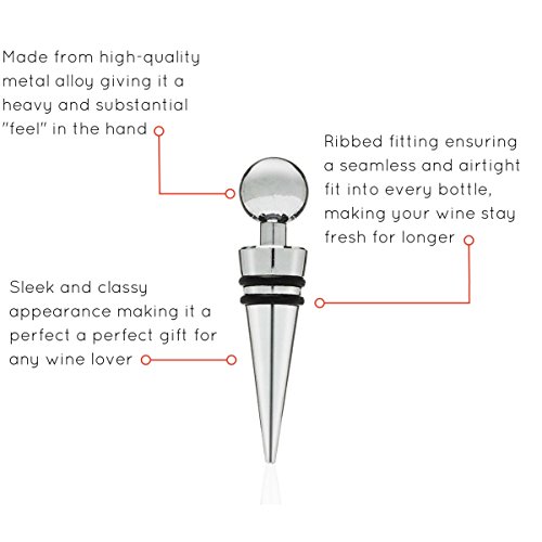 A classy wine stopper is included which is great for keeping your wine fresh if you don't plan on finishing the entire bottle at once. The rubber rings that surround the stopper ensure that none of the wine spills out, even if you were to hold the bottle upside down.