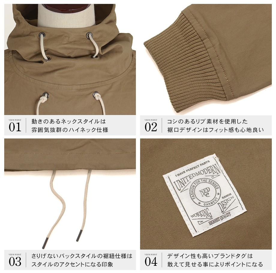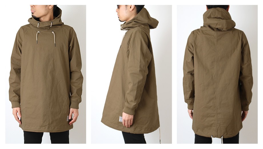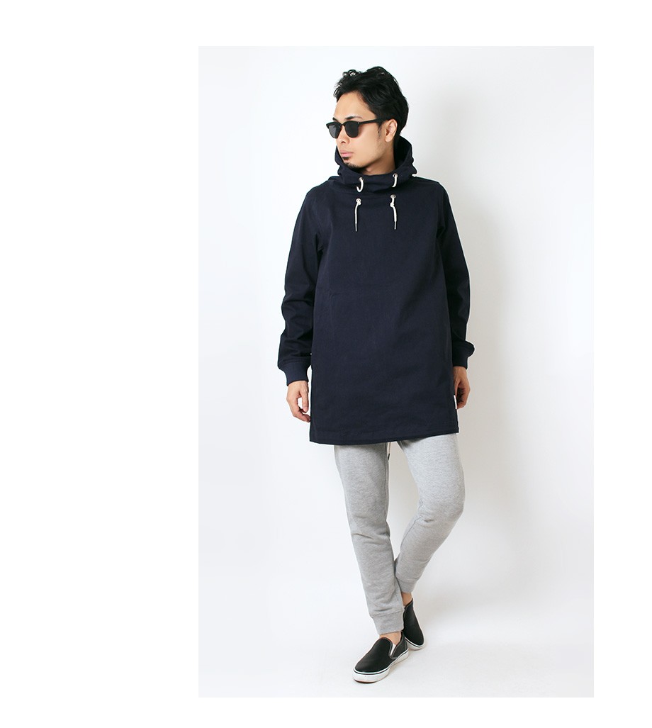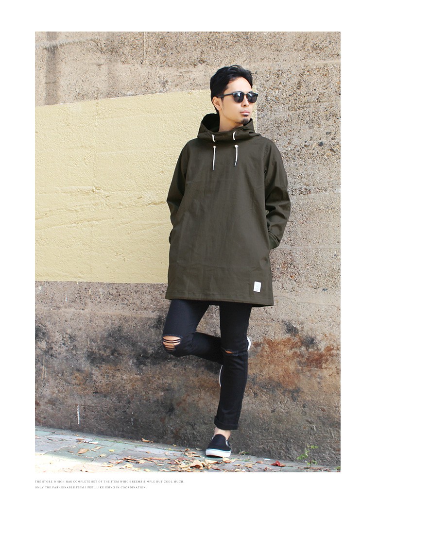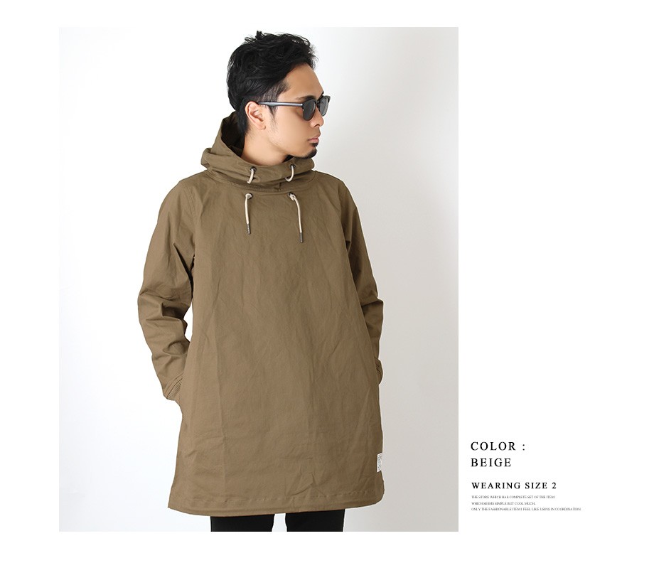 トレンドのオーバーサイズシルエットが感度の高い印象のプルオーバーパーカー。タフな高密度ツイル生地を使用しておりアウターとして信頼感ある仕上がり。ボリューム感のあるネックデザインも特徴的で雰囲気のある着こなしを演出してくれます。細身のボトムスと相性の良いフードアウターです。