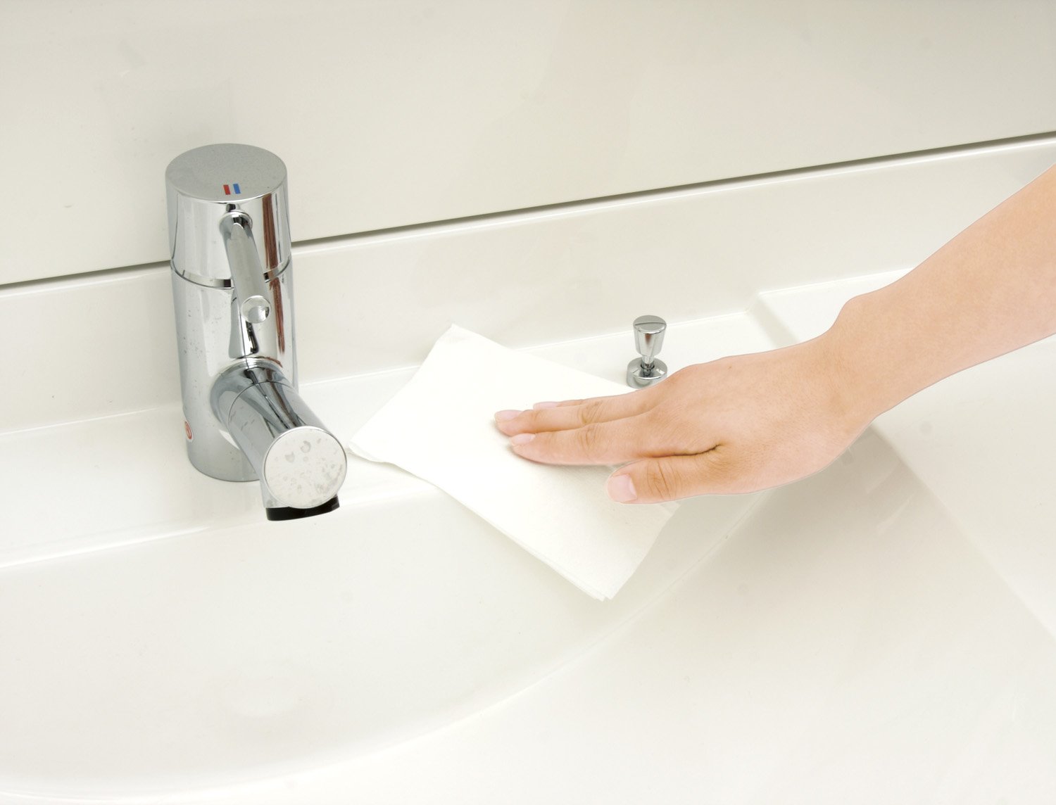 ● Dissolve water scum soiling · soap scum by citric acid power and scrape cleanly with superfine fiber (microfiber).