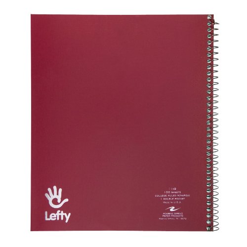 Roaring Spring "Lefty" Notebook, One Subject with 1 Double Pocket, 11 x 9 Inches, 100 sheets, College Ruled, Assorted Color Covers