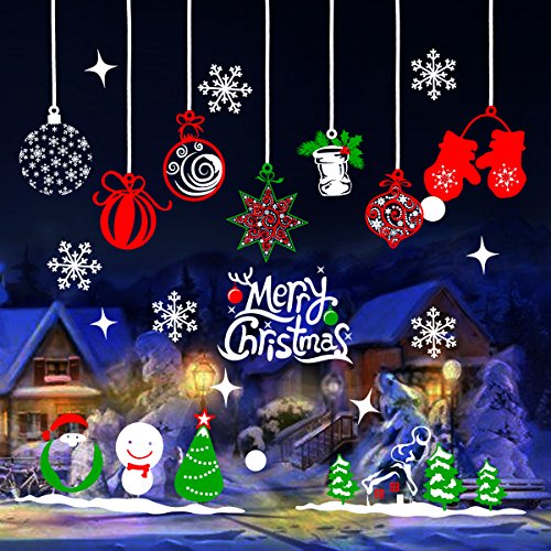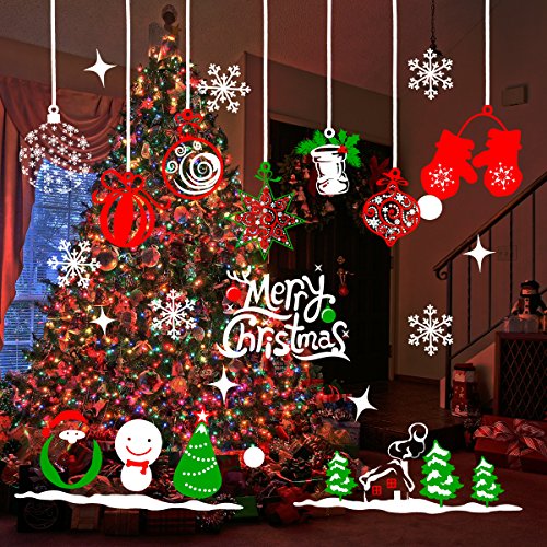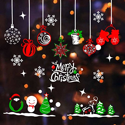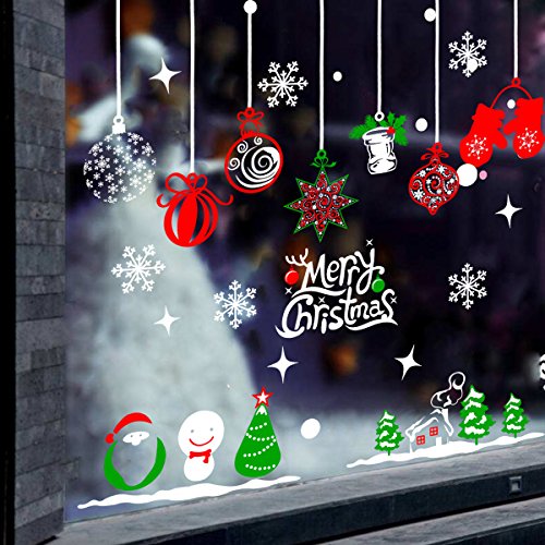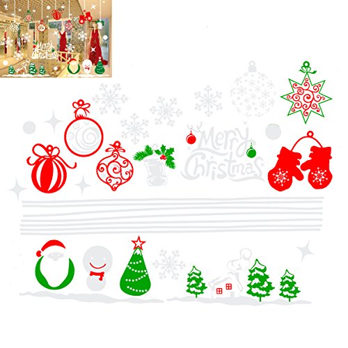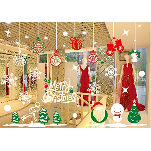 Tinksky Merry Christmas Window Stickers Decoration Snowman Reindeer Snowflake Sana Claus Xmas Tree Glass Wall Decals Store Home Party Decor 70x50cm