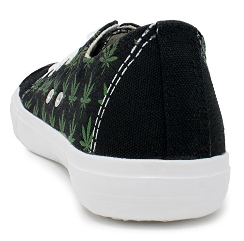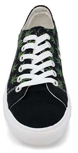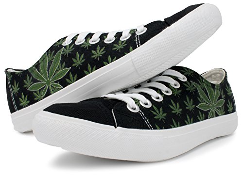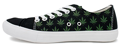 Product DescriptionA pair of cotton canvas sneakers decorated with a weed leaf print0
