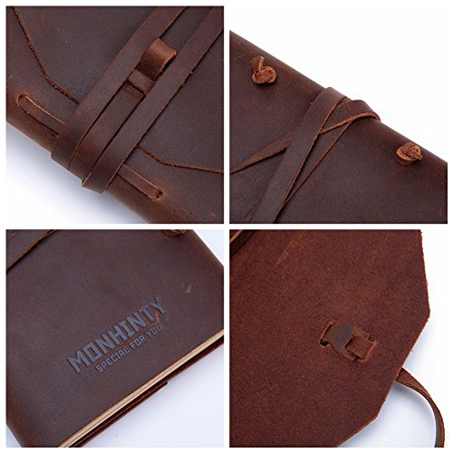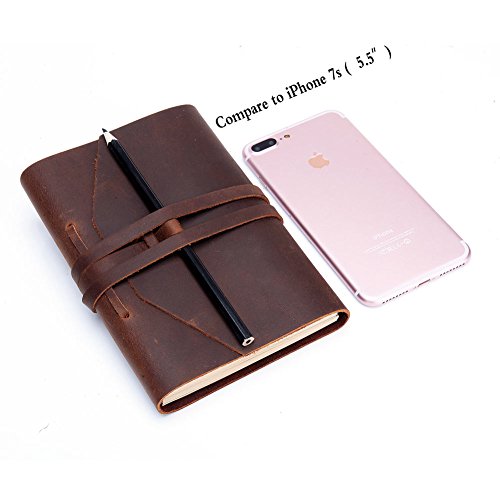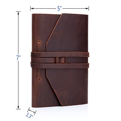 ✔100% TOP LAYER BUFFALO LEATHER: By using top quality crazy horse cowhide leather for the cover and handcrafting, this retro style leather journal notebook is unique, durable and sturdy to last.