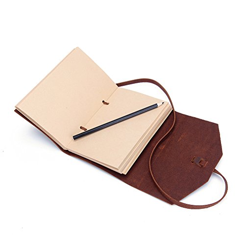 Leather Journal Notebook With Unlined Kraft Paper Antique Handmade Leather Bound Daily Notepad For Men Women Perfect Gift For Art Sketchbook Drawing Book Travel Diary Notebooks 7 x 5 Inch (Brown)