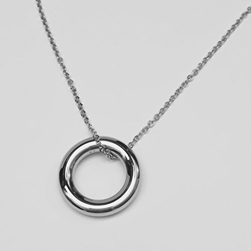 This necklace is made of hypoallergenic, nickel and lead free stainless steel. Features a simple floating circle pendant on a thin cable link chain.