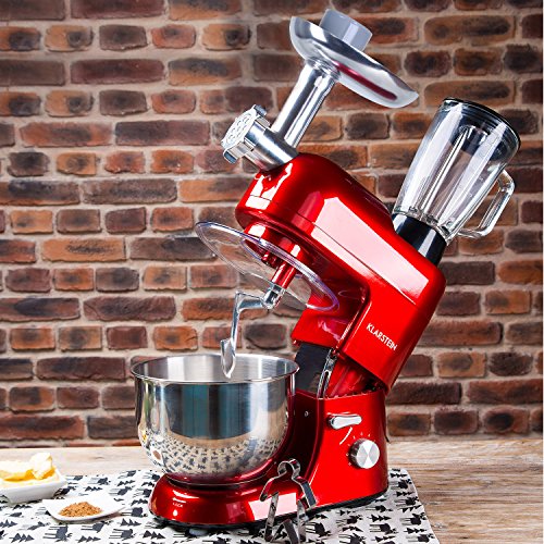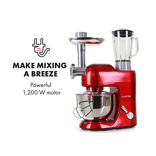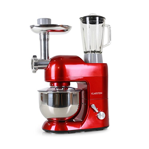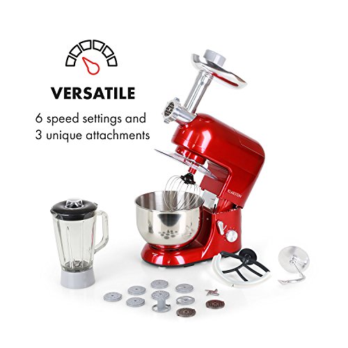 The Klarstein Lucia Rossa is a multi-functional foodprocessor that features a stir and knead module as well as a meat mincer andmixing bowl.