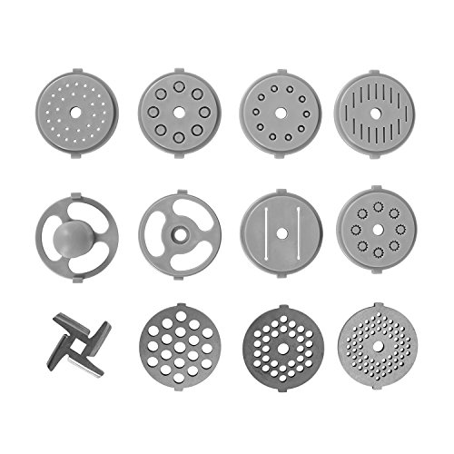 Included: ? 1 x Food processor ? 1 x Stainless steel mixing bowl ? 1 x Mixing glass with removable lid ? 1 x Kneading hook ? 1 x Mixing hook ? 1 x Egg whisker ? 3 x Attachments for different thicknesses of meat (3mm, 5mm,7mm) and meat tube ? Pasta attachments for macaroni, penne, tagliatelle andspaghetti etc ? User manual