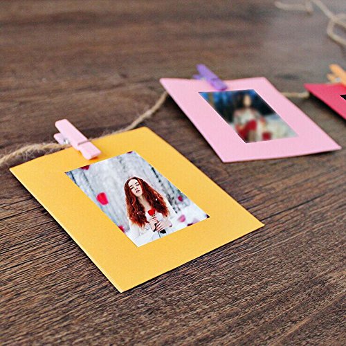 33pcs multi-color wall decor hanging frames,10pcs multi-color wooden clips,1pcs hemp ropes