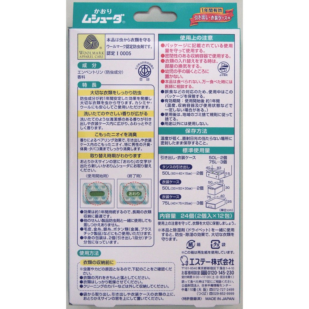 ● Effect lasts about 1 year, so it is ideal for long-term clothing storage.