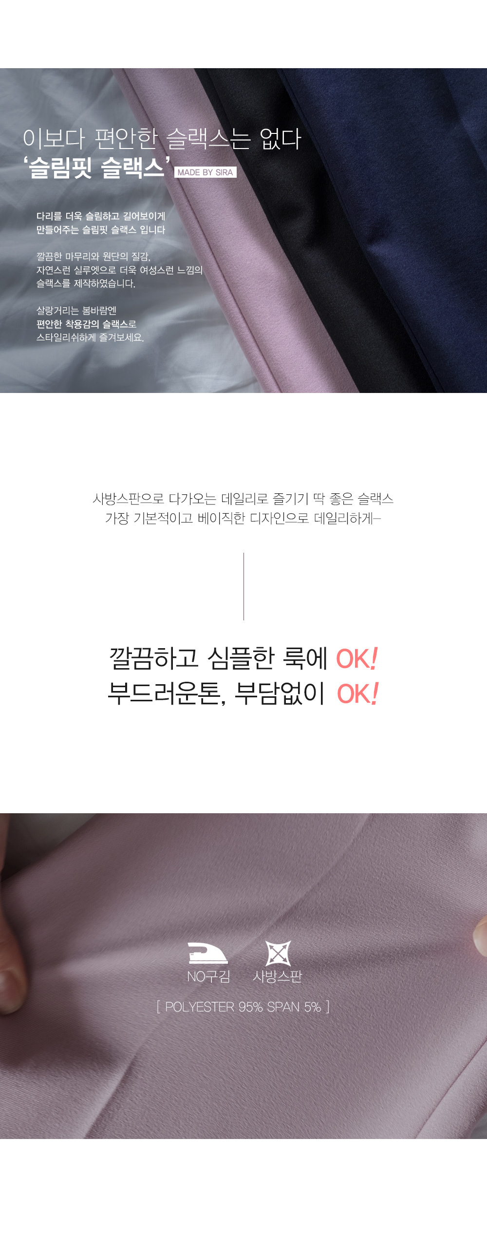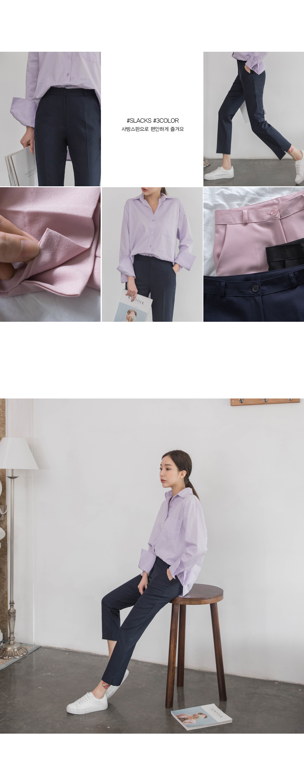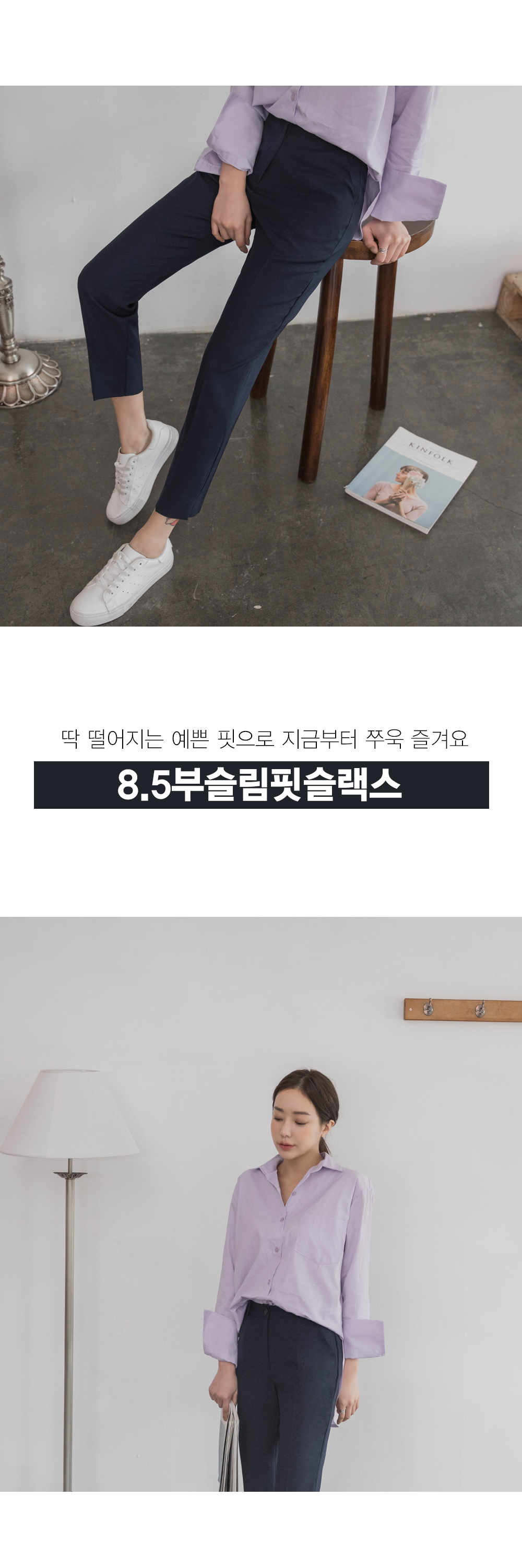 슬림핏으로 예쁜 라인을 완성해주는 팬츠입니다