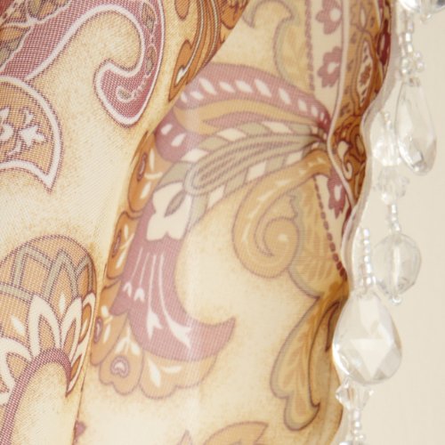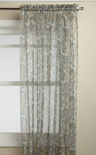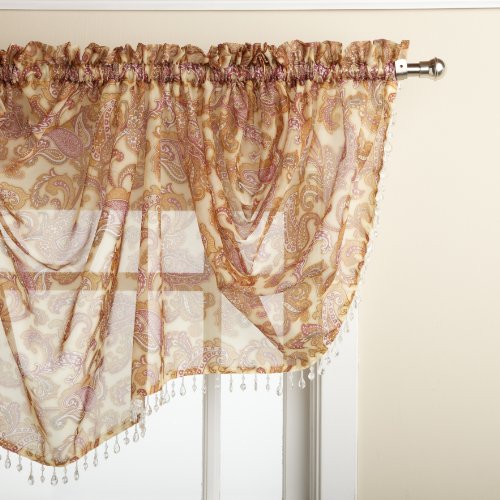 A delightful all-over, stylized paisley pattern is printed on translucent voile fabric to create this romantic rod pocket panel. the matching regent valance is enhanced with crystal bead trim. length measurements are exclusive of header.