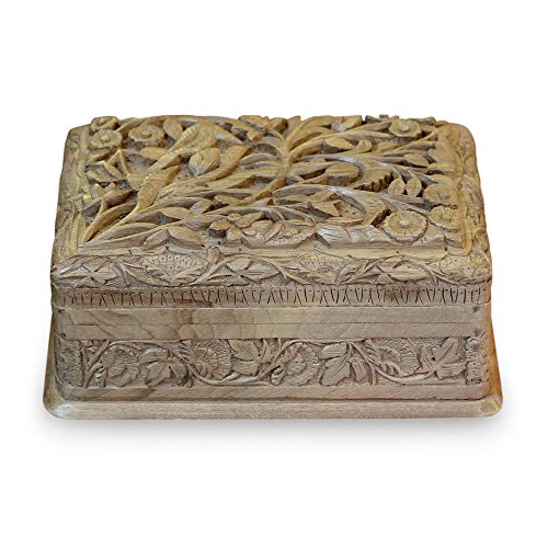 NOVICA Leaf And Tree Wood Jewelry Box, Brown 'Birds In Wonderland'