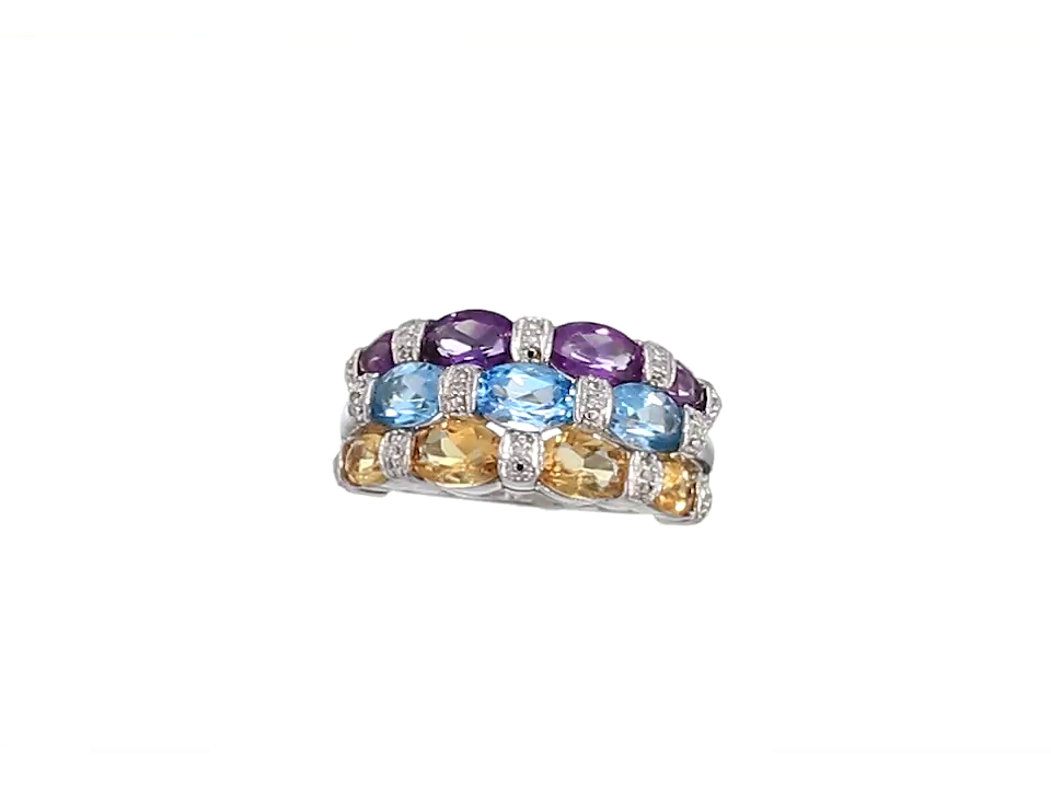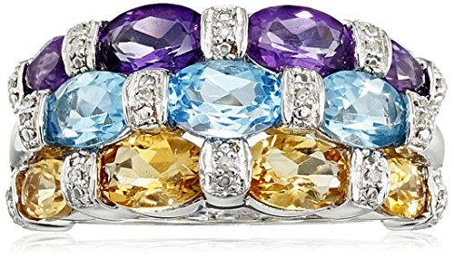 Sterling Silver Swiss Blue Topaz, Citrine, Amethyst and Diamond Ring, Size 7