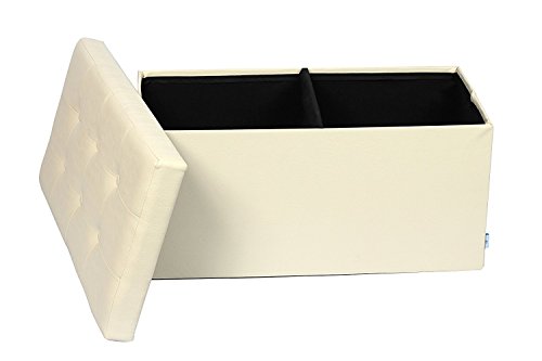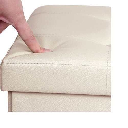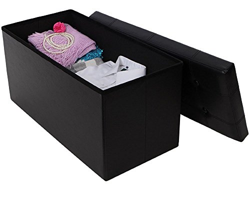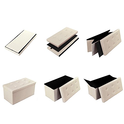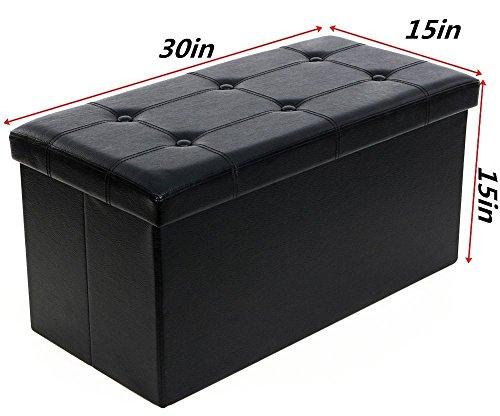 -. Feature : PERFECT HIDDEN STORAGE SOLUTION STORAGE OTTOMAN- Special Hidden Cube Organizer Storage Box for Sundries including Clothes Magazines and even Shoes, De-cluttering Your Living & Working Environment / STURDY & COMFY STORAGE BOX FOR SITTING -Thickened MDF Construction Stool Seat Holds up to 660Lbs (Static Load capacity).Specially Designed without Tufted Buttons and Soft Sofa Sponge Upholstered Top,Protect Your Clothes from Scratch / SECONDS TO SET UP & FOLD FLAT - Collapsible Ottoman Design Brings Easy and Take Seconds to Set up, Can be Folded Flat When Not in Use, Space-saving / CLASSIC DECORATIVE APPEARANCE- Faux Leather Finish Top Style Greatly Enhances Your Home and Office Decor / MULTIFUNCTIONAL & DECENT SIZE -(LxWxH): 29 7/8"L x 14 7/8"W x 14 7/8"H , Performs as not Only a Ottoman Seat,Ottoman Coffee Table, Foot Rest, Puppy Step Stool,but also Storage Organizer Box