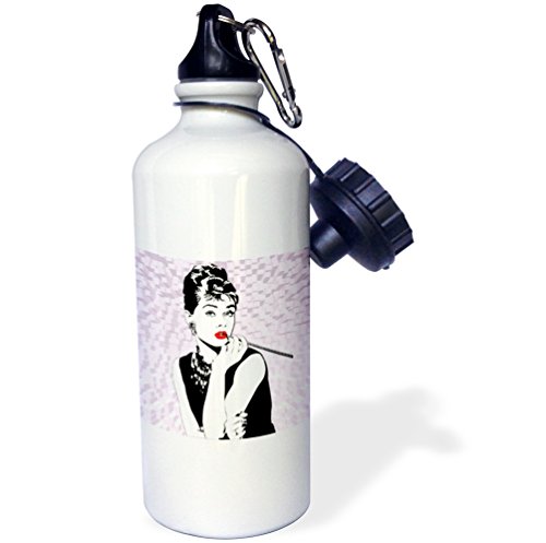 -. Title : 3dRose RinaPiro - Audrey Hepburn - British actress. Fashion Icon. Screen legend. Pink background. - 21 oz Sports Water Bottle (wb_253872_1)