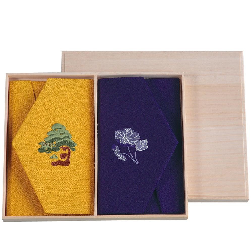 金封の包み方は慶事と弔事で異なります。慶事の右包みと弔事の左包みをもとに考案され、忠実に取り入れた金封ふくさのセットです。 製造国:日本 素材・材質:表地:絹100% 商品サイズ:約12×20cm 仕様:桐箱入 ※サプライヤー直送品 ご注文後3~4営業日後の出荷となります【商品名】正絹ちりめん刺繍入金封ふくさ慶弔セット(桐箱入) 756