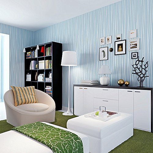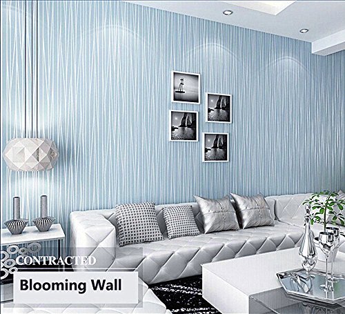 -. Title : Blooming Wall:Non-woven Classic Plain Stripe Moonlight Forest Wallpaper,High Quality,20.8 In*32.8 Ft=57 Sq ft Per Roll
