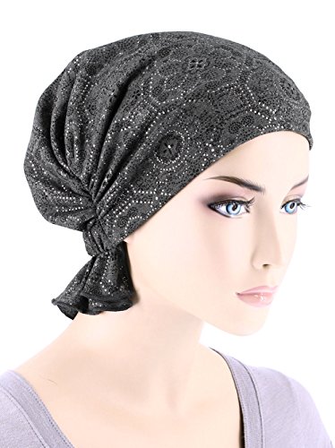 -. Feature : Product Specifications: The Abbey Cap is pretied and requires no tying, just slip it on & off you go. Stretches to fit most head sizes. Cute scrunch band detailing. Shirring on cap adds height and creates volume. Back ruffles cover to nape of neck. Built in stretch elastic allows for a snug fit. Can be worn over or behind the ears. Comfortable, soft, no-slip, pre tied, easy to wear, fashion chemo hat beanie scarf. Made in the USA! Sweatshop Free. / Fabrics: Offered in stretchy, light weight fabrics including Cotton Knit, Sweater Knit, Blended Knit, Sequined and Ruffle Fabric. Over 100+ Abbey Caps to choose from. We have a nice selection to match your everyday wardrobe or to wear to an elegant special occasion. / Washing Instructions: Hand Wash or Machine Wash, Cold, Gentle Cycle. Dry Flat or Hang to Dry. Do Not Bleach. / About The Abbey Cap®: The Abbey Cap was designed for women undergoing hair loss due to chemotherapy treatments, Alopecia or other medically related hair loss. It is made specifically to be worn by women who have little to no hair. Can also be worn with halo wigs, with bangs or over a full wig. It's a stylish and comfortable alternative to wigs. Perfect gift to bring to a chemo head shaving party. Pretty chemo gifts for women cancer patients. / About ChemoFashionScarf®: The original 'beanie', The Abbey Cap® was designed by Chemo Fashion Scarf ®, a trusted provider of head covers by cancer centers, wig shops, mastectomy boutiques and hospitals since 1969. We offer a full selection of casual and dressy, chic cancer headwear including chemo hats and scarves, turbans, beanies, sleep caps, cloche hats, headwraps and other chemo scarfs. Add a little comfort to your day with The Abbey Cap®.