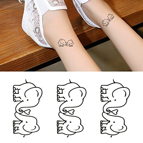 Oottati Small Cute Temporary Tattoo Two Couple Elephants (Set of 2)