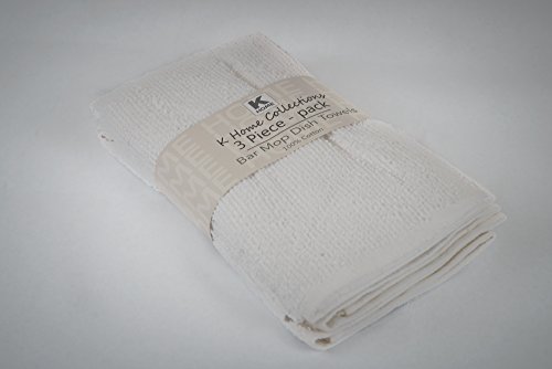 Cotton Bar Mop Dishtowel, 16 by 18-inches, Set of 3, White - Great for mopping everyday kitchen and liquid spills
