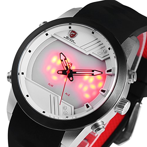 -. Title : SHARK Sport Men's Wrist Watch Analog Digital LED Black Silicone Band Day/Date/Alarm SH541