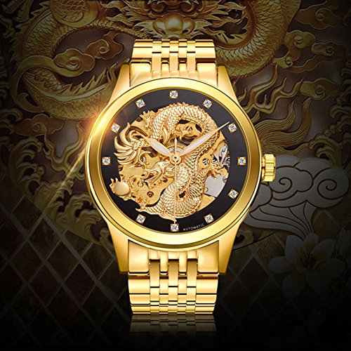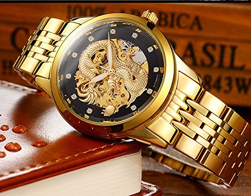 -. Title : KDJSTORE Luxury Men's Skeleton Automatic Mechanical Wrist Watch Dragon Stainless Steel Band