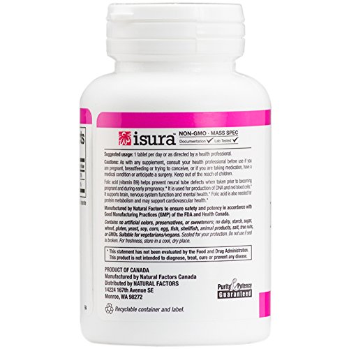ReleaseDate : 2015-05-14 Studio : Natural Factors Publisher : Natural Factors Binding : Health and Beauty Product Description The B vitamin folacin, or folic acid, works closely with vitamin B12 to produce red blood cells, is vital to proper cell division, prevents damage to cellular DNA and supports healthy colon and cervix functions. Folic acid in supplement form is twice as available to the body as the folate found in foods. 0