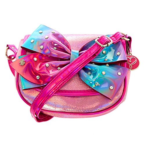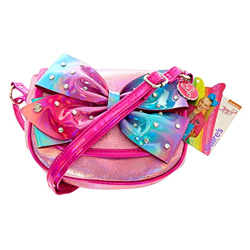 Studio : JoJo Siwa Publisher : JoJo Siwa Binding : Apparel Product Description Store your favorite Claire's lip balm and accessories in this shimmering JoJo Siwa crossbody bag. Metallic pink crossbody has a holographic finish and a signature charm. The front flap features large pastel JoJo Siwa Signature hair bow accented with a iridescent stones. Crossbody bag by JoJo Siwa 7" W x 6" H Adjustable straps Magnetic closure 0