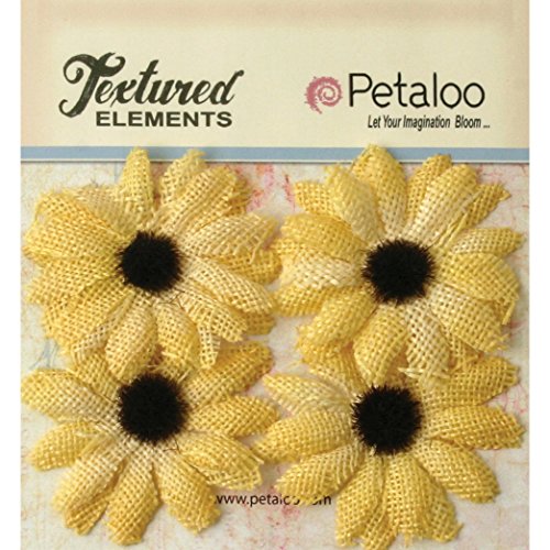 Petaloo Textured Elements Burlap Sunflowers, 2-Inch, Yellow, 4-Pack