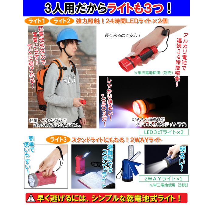 【지진/재난/대비/방재/상품】 방재 세트 가족 3인용【헬멧 부착】 방재 상품 세트 비상용 유출대 헬멧 비상 유출대 방재 용품 피난 세트 방재《굿츠》 어린이용 여성용 재해 상품 방재 생존배낭 결혼 축하(지진 대비 방재 세트 피난 세트)