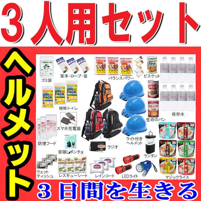 상품명 방재 세트 가족 3명 용【헬멧 부착】 방재 상품 세트 비상용 유출대 헬멧 무료 우송 비상 유출대 방재 용품 피난 세트 방재《굿츠》 어린이용 여성용 재해 상품 방재 배낭 결혼 축하 지진 피난대 비상대 멋쟁이 안전 장비 구조 회중전등 보존 수미네랄 워터 블럭 영양식품 용도 방재 세트 3명 분,3명 용(헬멧 부착)피난 상품 3일간 상품 설명 몇과!3명분의 헬멧까지!