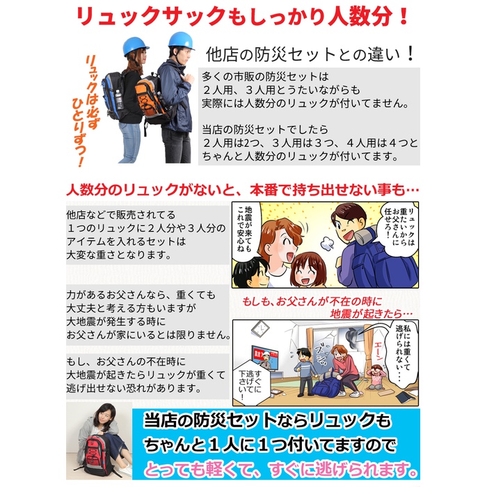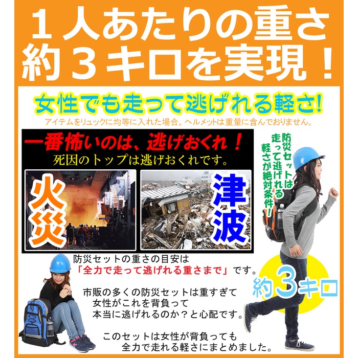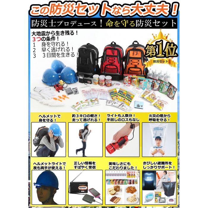 원본상품명: ヘルメット付き防災セット 家族 3人用 防災グッズ セット 非常用持ち出し袋 ヘルメット 送料無料 非常持ち出し袋 防災用品 避難セット 防災グッツ 子供用 女性用 災害 グッズ 防災リュック 結婚祝い 地震 避難袋 非常袋 非常用品