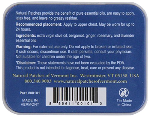 Natural Patches of Vermont Essential Oil Patches Bergamot, Calming Stress Relief Formula 10 count tins (a) - 2pc