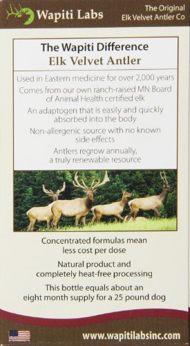 Wapiti Mobility, with Elk Velvet Antler and traditional eastern herbs, helps maintain joint flexibility and mobility in dogs. The MN Elk Velvet Antler contains a variety of cell types including glucosamine which is an easily absorbed natural substance that helps maintain the health and resiliency of joints and connective tissues. Our once a day dosing in powder or tablet form is an easy and economical way to help make your dog feel better.Feature