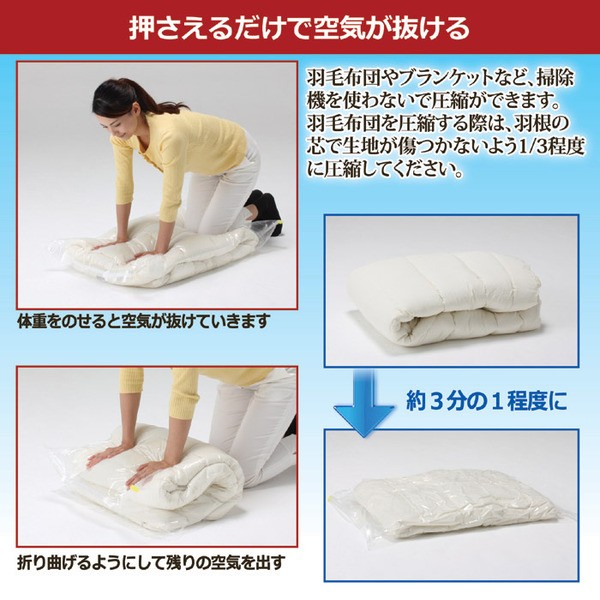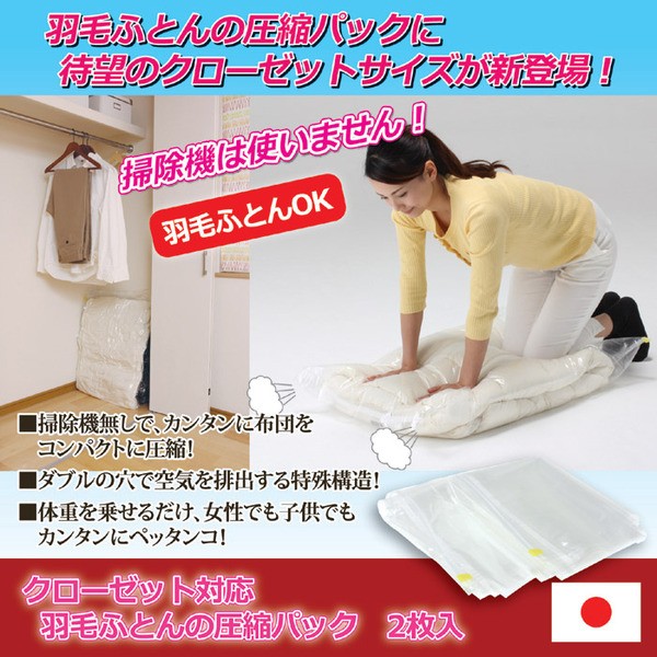 掃除機不要!クローゼット対応、羽毛ふとんの圧縮パック 2枚入