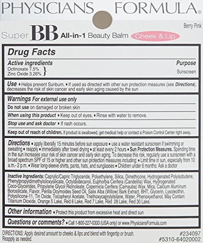 -. Title : (2 Pack) Physicians Formula Super BB All-in-1 Cheek and Lip Beauty Balm, Berry Pink, 0.23 Ounce each