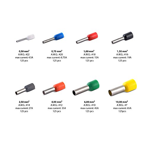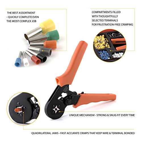 1,000 Piece Electrical Connector Kit w/ Wire Crimping Tool & Durable Carry Case, Ferrules Crimp, by Approved for Automotive