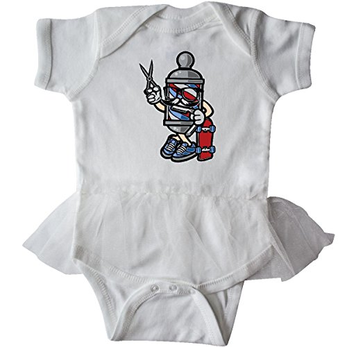 Product DescriptionBarber skater Infant Tutu Bodysuit featuring a fun design with a cartoon style barber pole holding scissors and a skateboard. What a fun combination for those with a fun sense of humor! That's you right!?0