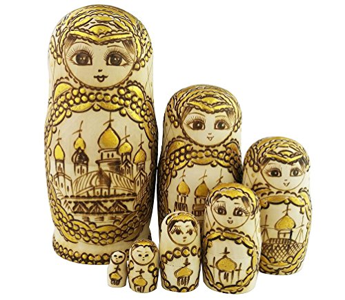 -. Feature : Handmade Wood Wooden Russian nesting Wishing doll. Stunning. Adorable. The artwork is flawless. / Contains 7 dolls. The height of the largest one is 7.8". A beautiful memory for many as it may be played in kids time. / Children's great toy and wonderful decoration for house. Great for gift choice for P.R.Ivate use. / Gold Color Beautiful Traditional painting. Fun for all ages. Housewarming gift. Business gift. Birthday Gift. / Ideal for a christmas or birthday Holiday gift. Even the smallest one is beautiful crafted.