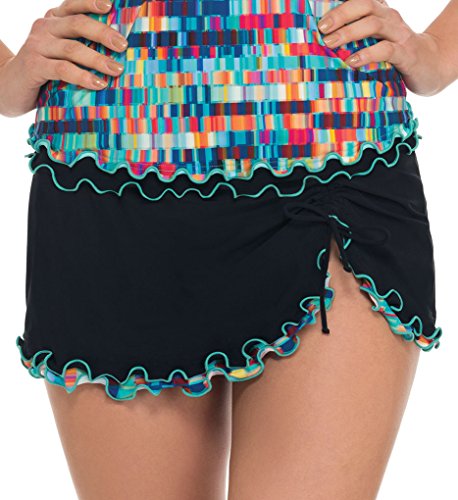 The matrix skirted bikini bottom is constructed with an asymmetrical slit and adjustable side tie. This skirt is fun and flirty and provides desired coverage.