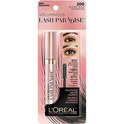 L'Oreal Voluminous Lash Paradise Washable Mascara, 200 Blackest Black (Pack of 2)